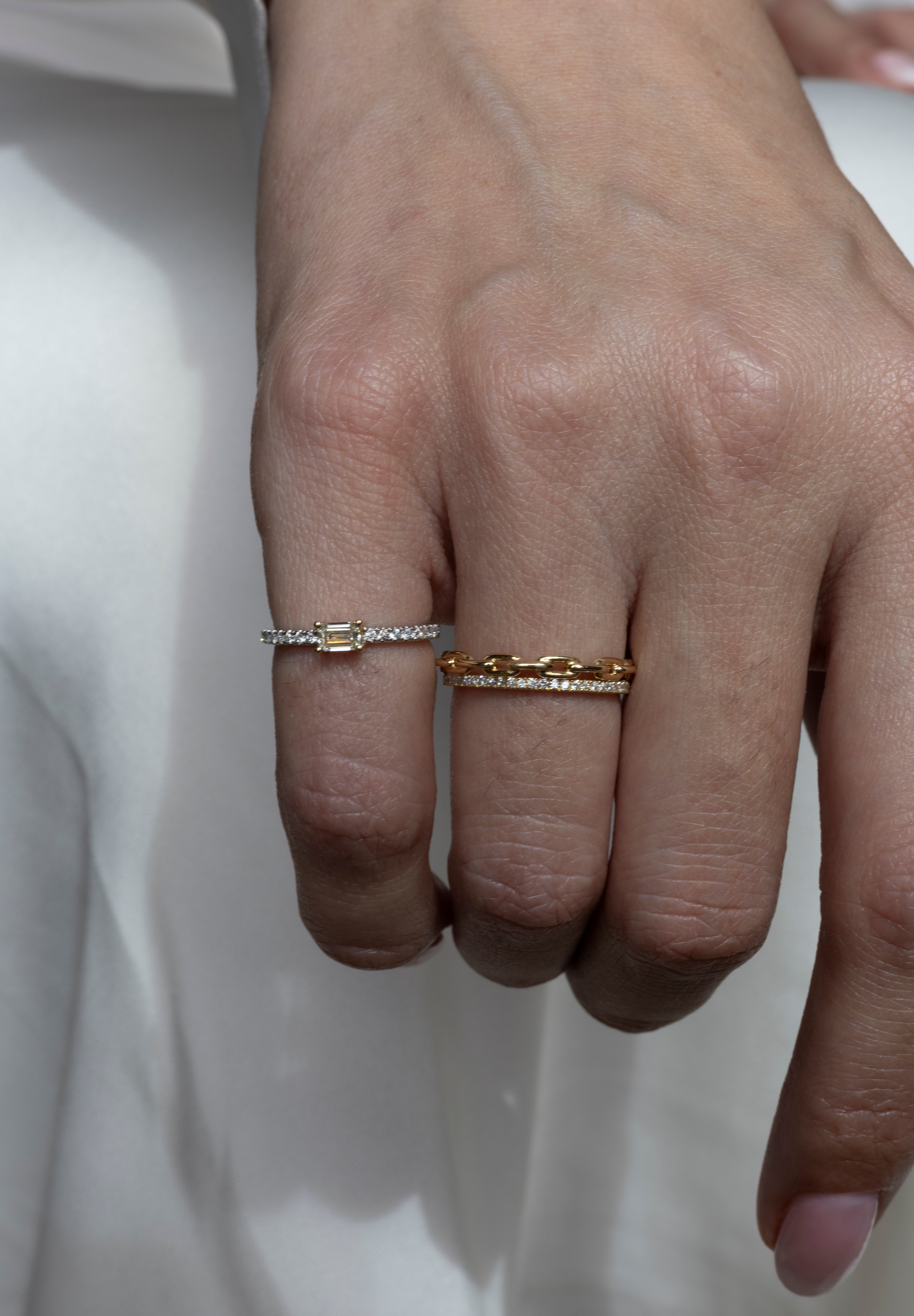Minimalist, modern, and effortlessly timeless, the Chain Band Ring in 18k Yellow Gold brings a refined edge to everyday jewelry. Crafted in polished 18k yellow gold, its delicate chain-link design offers a perfect balance of simplicity and contemporary style.