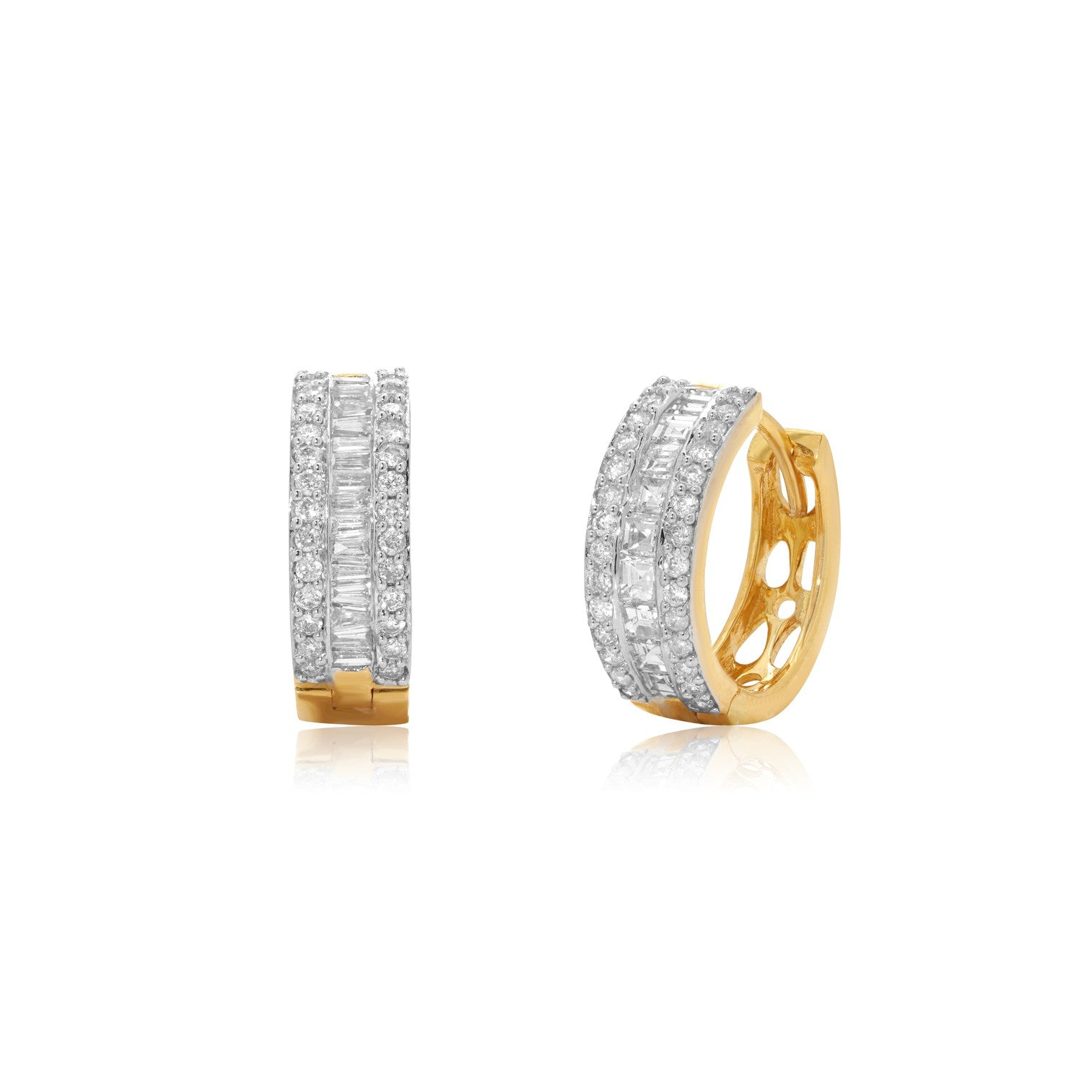Refined and radiant, these Carré and Pavé Diamond Hoops are crafted in polished 18k yellow gold, blending classic design with modern sophistication. Featuring a center row of carré-cut diamonds—known for their clean lines and sophisticated elegance—framed by pavé-set round diamonds, these hoops offer a distinctive sparkle and timeless beauty.