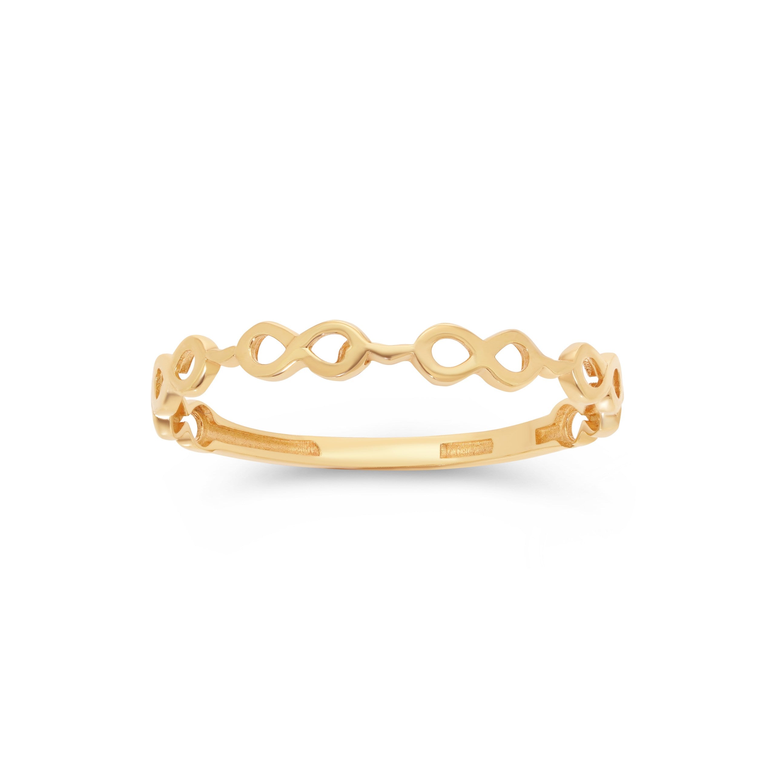 Delicate, meaningful, and timeless, the Infinity Half Band Ring in 18k Yellow Gold is a celebration of eternal beauty and enduring love. Crafted in polished 18k yellow gold, its graceful infinity design symbolizes limitless connections—making it a meaningful gift or a personal token of lasting affection.