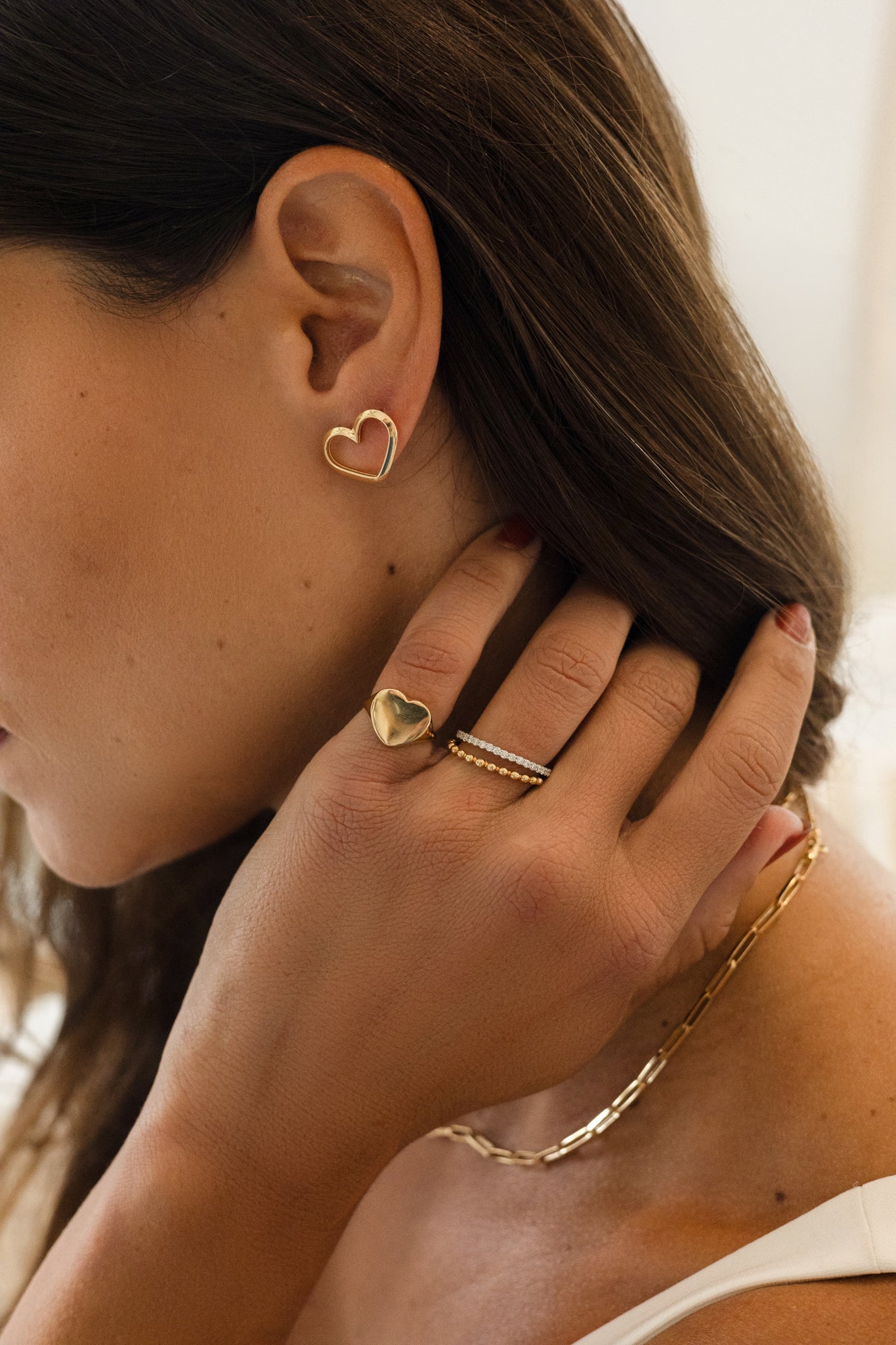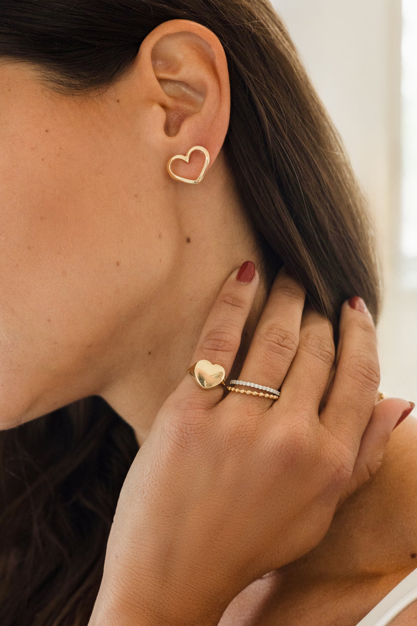 Delicate, romantic, and full of charm—the Open Heart Stud Earrings are a graceful expression of love and individuality. Crafted in polished 18k yellow gold, each earring features a hollow heart silhouette that captures the perfect balance between simplicity and sentiment.