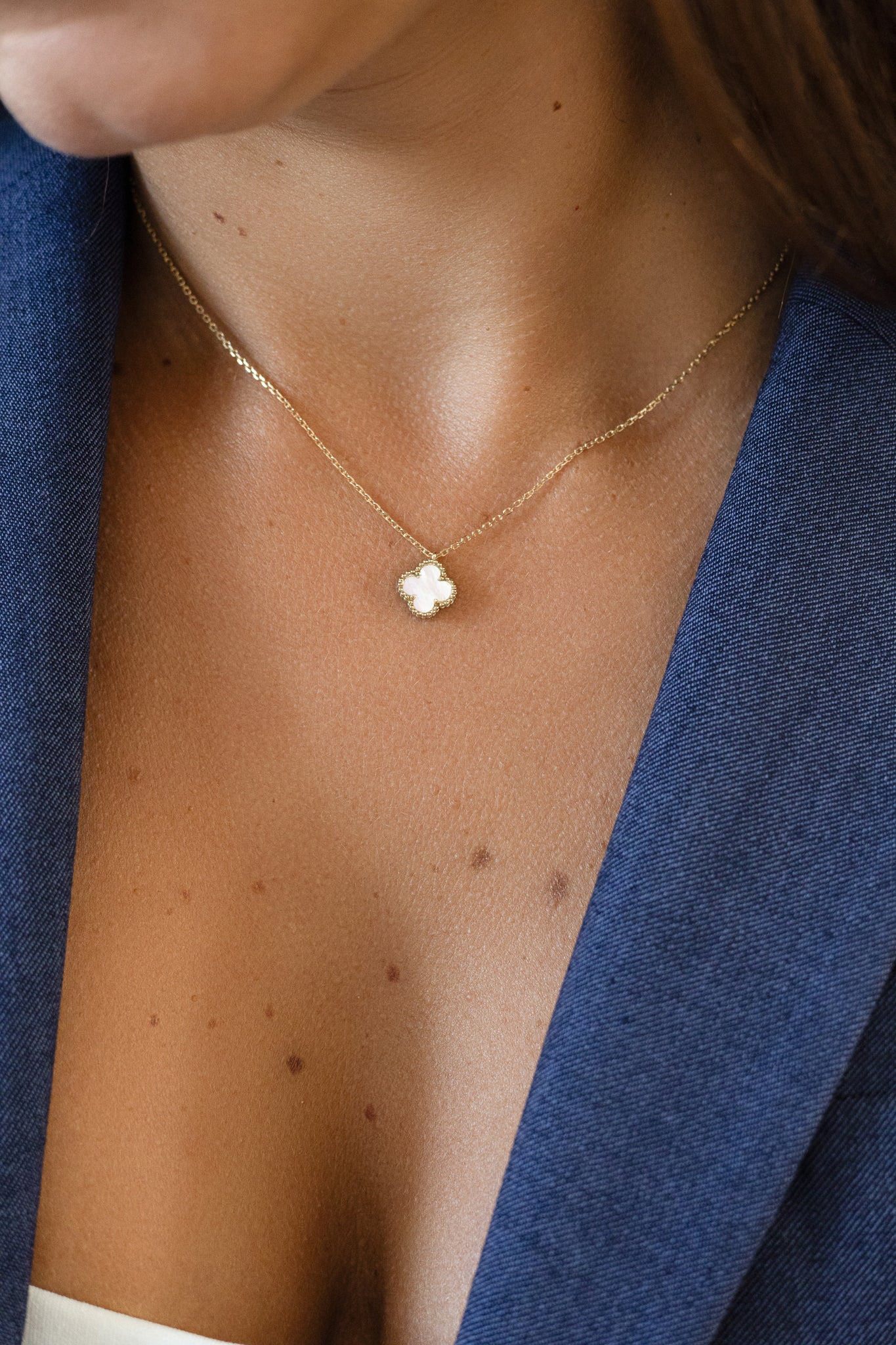 Model: Mother-of-Pearl Clover Pendant Necklace