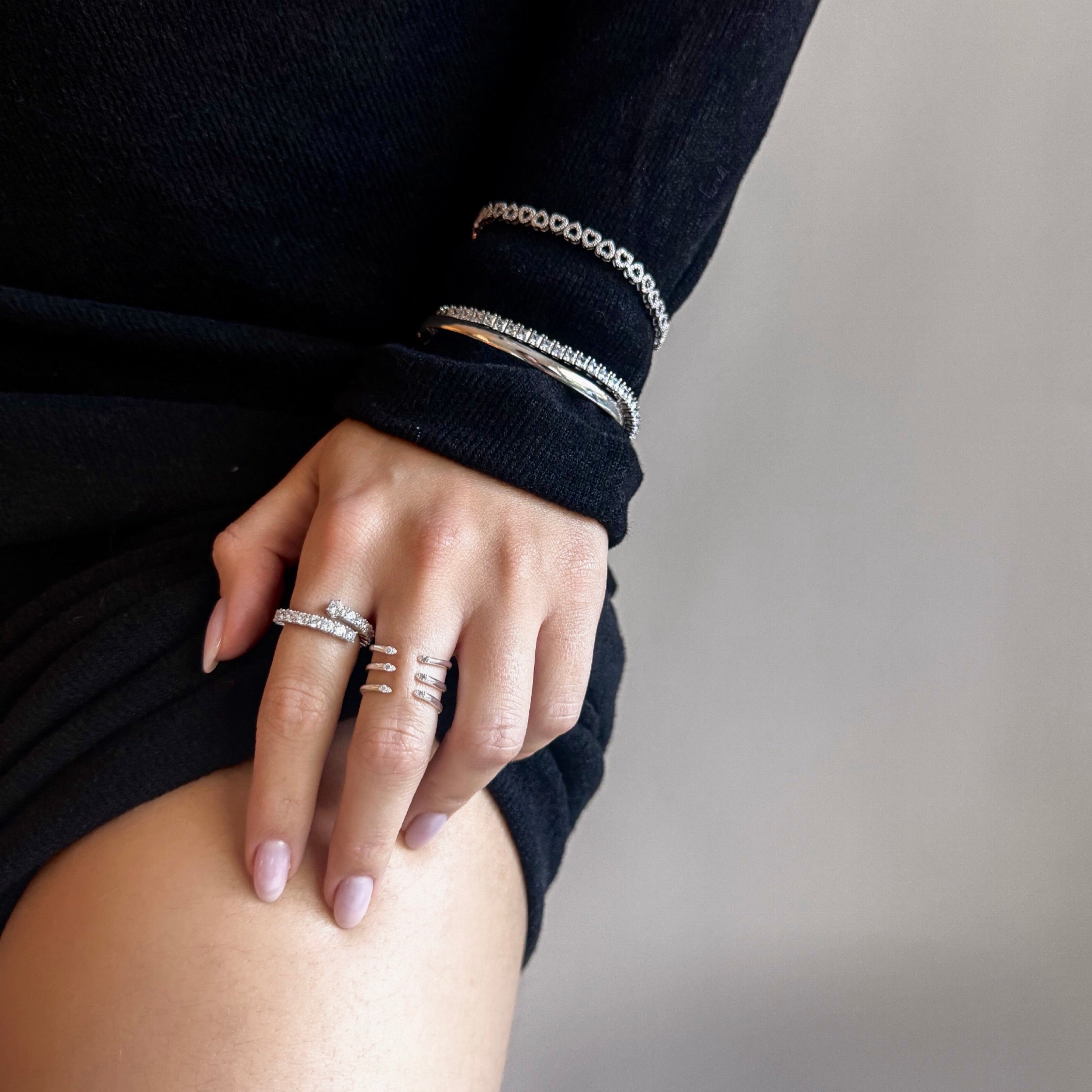 Open-Ended CZ-Studded Fashion Ring