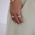 The Solace Ring is the ultimate bold statement piece, blending modern minimalism with effortless sophistication. Its sleek, sculptural design makes it perfect for stacking in Mixed Metal combinations or wearing solo for a striking, on-trend look. Versatile enough for any occasion, this ring is a must-have for those who love contemporary elegance with a fashion-forward edge.