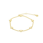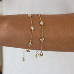 The Cali Bracelet features a delicate, thin chain with bold heart-shaped charms, crafted in gold vermeil. This piece is perfect for adding a romantic yet trendy touch to your wrist. Whether worn alone for a chic statement or layered with other bracelets, the Cali Bracelet effortlessly combines romance and minimalism, making it a versatile addition to any look.