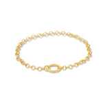The Dahlia Bracelet features a beautiful Portuguese chain link design, complete with a round pendant that allows you to add charms for a personalized touch. You can customize it with your favorite charms or wear it solo for a more modern, minimalist look. This versatile piece is perfect on its own or layered, offering endless styling possibilities to match your personal style.