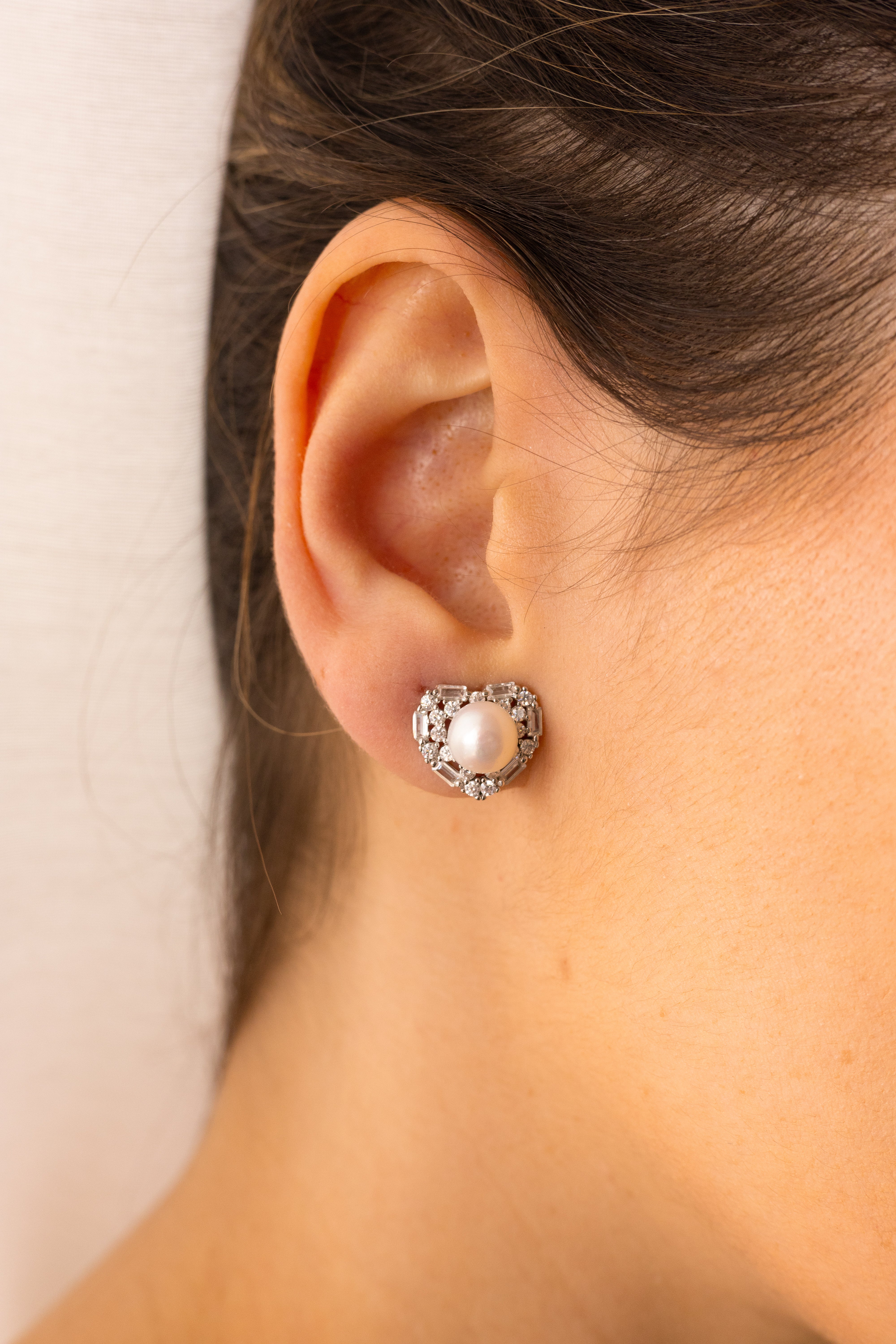 Inspired by the quiet radiance that defines Love in Venice, the Grace Earrings reinterpret the symbolism of light, devotion, and beauty through a heart-shaped design full of meaning. Measuring 1.4 cm (0.55"), this stud sits delicately on the earlobe like a luminous button — refined, feminine, and effortlessly elegant.