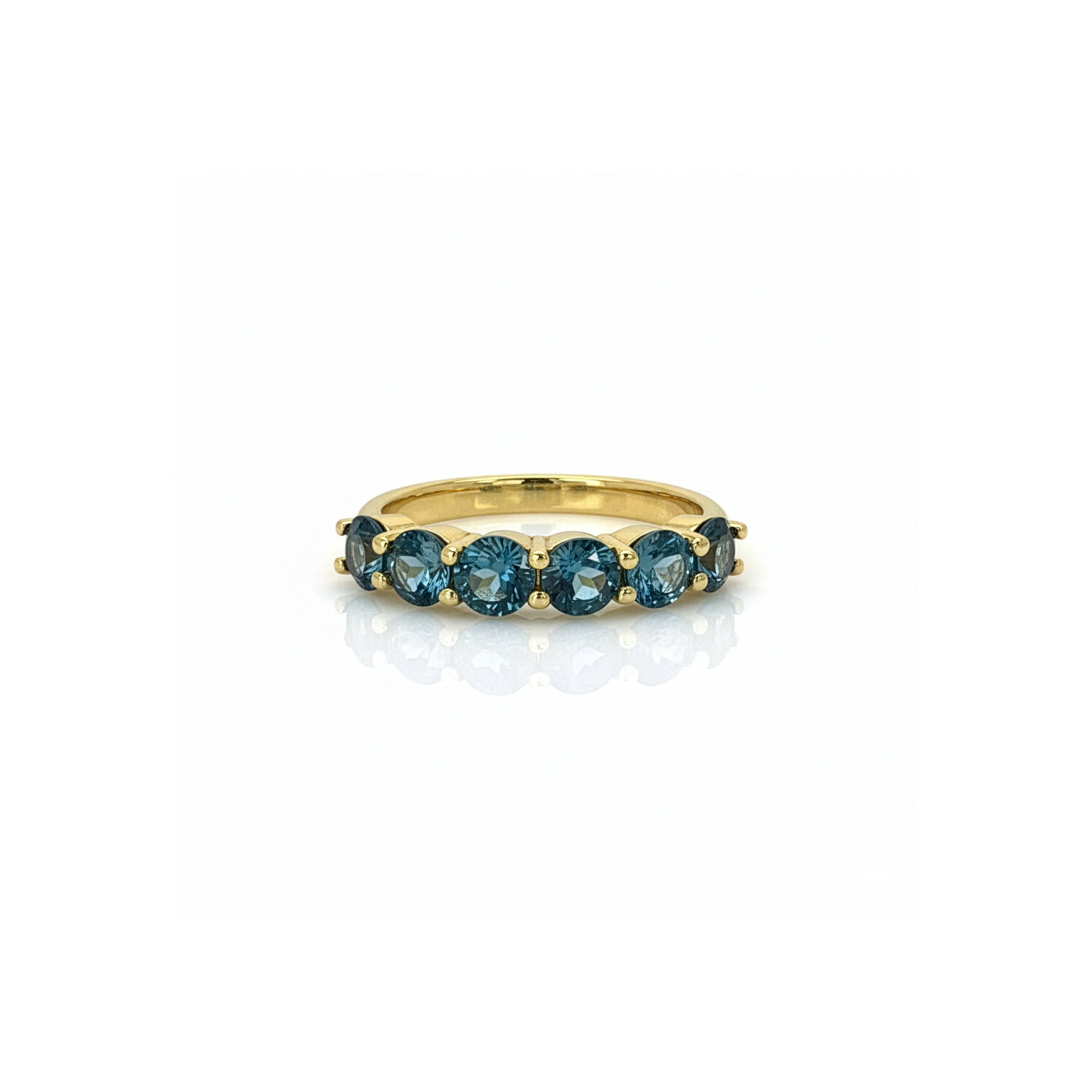 Inspired by the serene movement and depth of Venetian waters, the Laguna Ring brings the luminous beauty of natural London Blue Topaz to life in a refined and modern silhouette. Set with six 4 mm stones, each gem displays the signature “dry blue” tone that makes London Topaz so timeless — a velvety, muted shade of blue associated with clarity, calm, and sophisticated elegance.