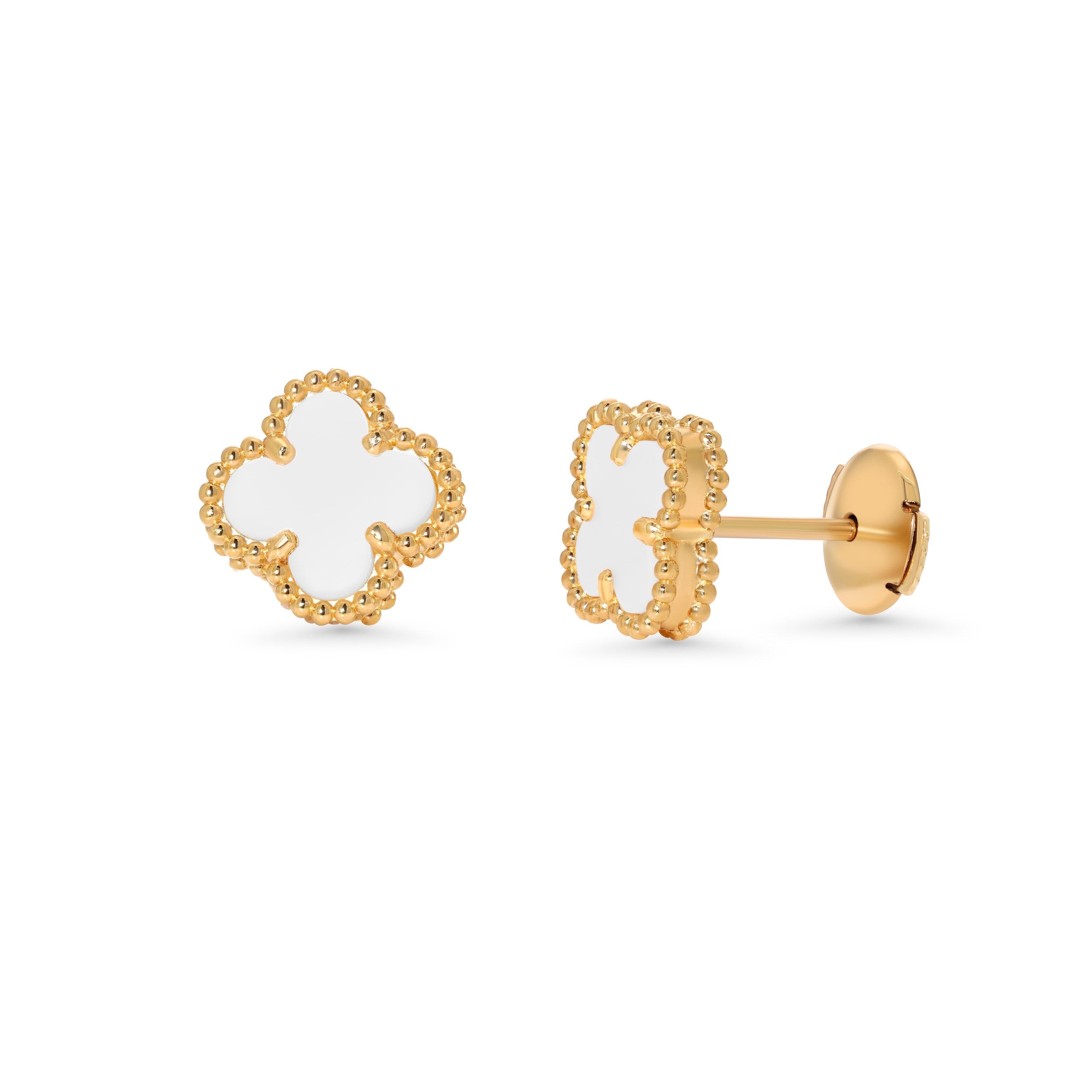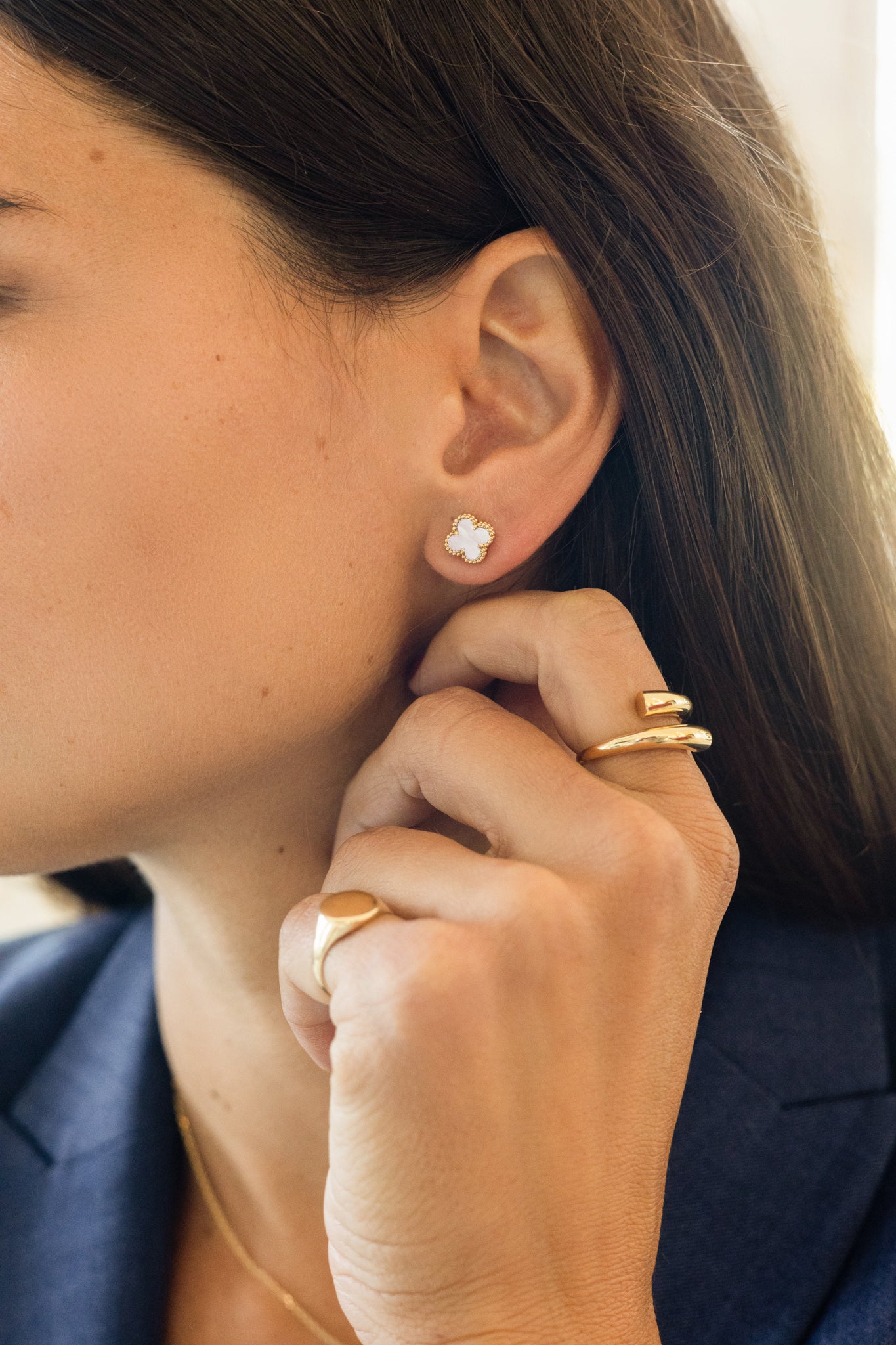 Graceful, luminous, and full of symbolism, these Clover Stud Earrings are a refined tribute to timeless elegance. Crafted in polished 18k yellow gold and inlaid with radiant natural mother-of-pearl, the four-leaf clover design represents luck, love, and beauty—all in a delicate, wearable form.