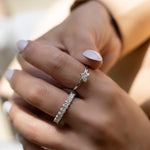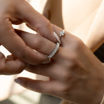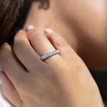 Timeless sophistication meets flawless craftsmanship in the Princess Cut Half Eternity Diamond Ring. Crafted in polished 18k white gold, this stunning piece showcases a line of natural princess-cut diamonds—each meticulously matched in size, color, and clarity—set across the top half of the band, creating perfect harmony and breathtaking brilliance.