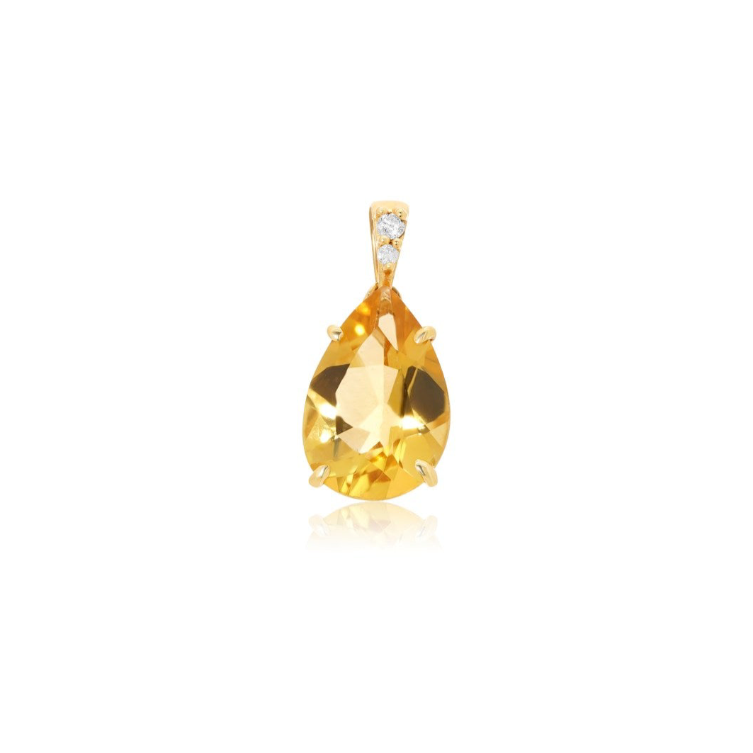 The pear-shaped citrine, measuring approximately 10 x 7 mm, is gracefully suspended by a polished gold bail accented with two small round diamonds, adding a refined sparkle to the piece. With a total weight of approximately 1.0 gram, this pendant offers a lightweight, luminous touch perfect for daily wear or special occasions.