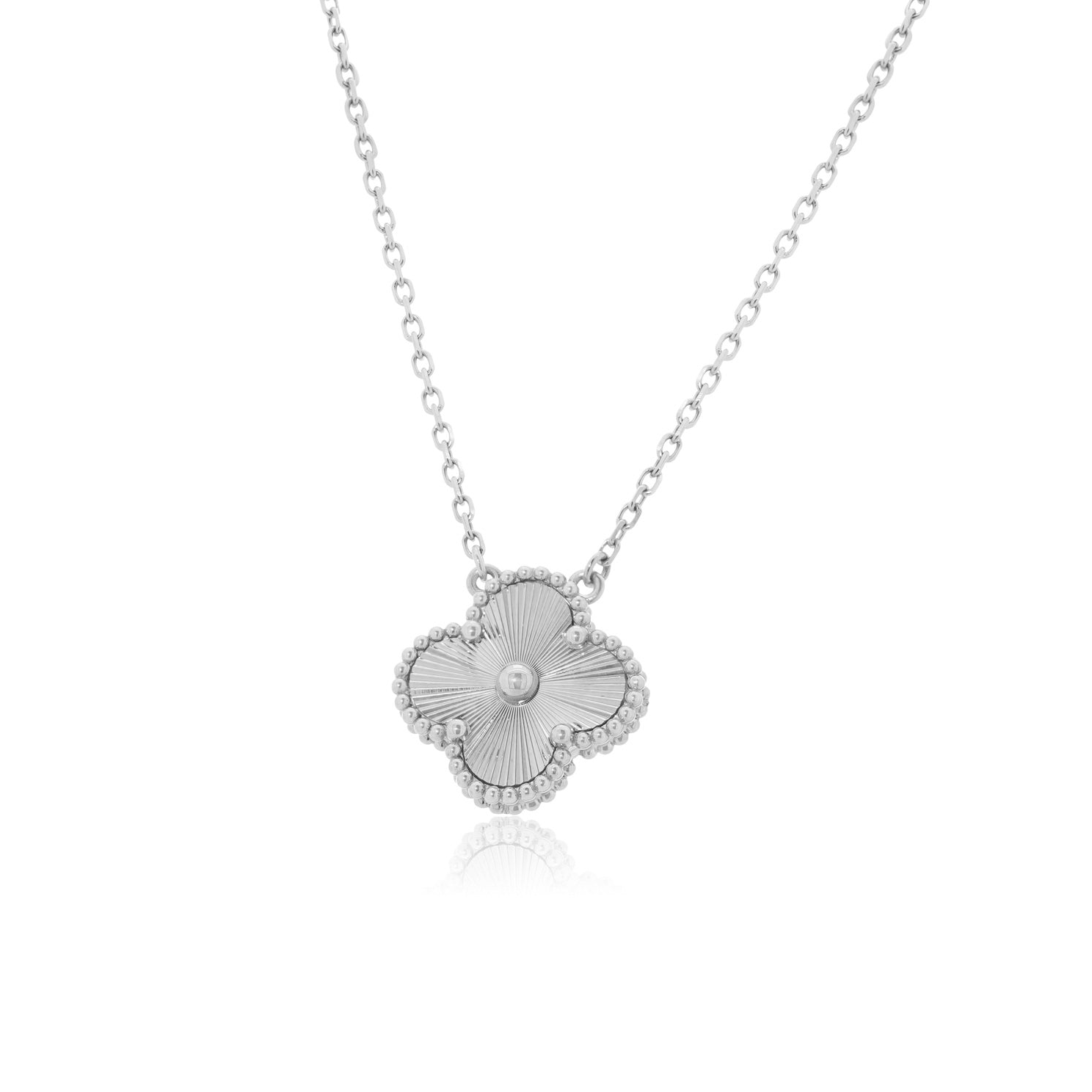 Crafted in polished 18k white and yellow gold, the Vintage Clover Necklace blends timeless elegance with modern sophistication. Featuring the iconic clover design, this piece brings effortless charm and refined beauty to any jewelry collection, making it an essential choice for everyday luxury.