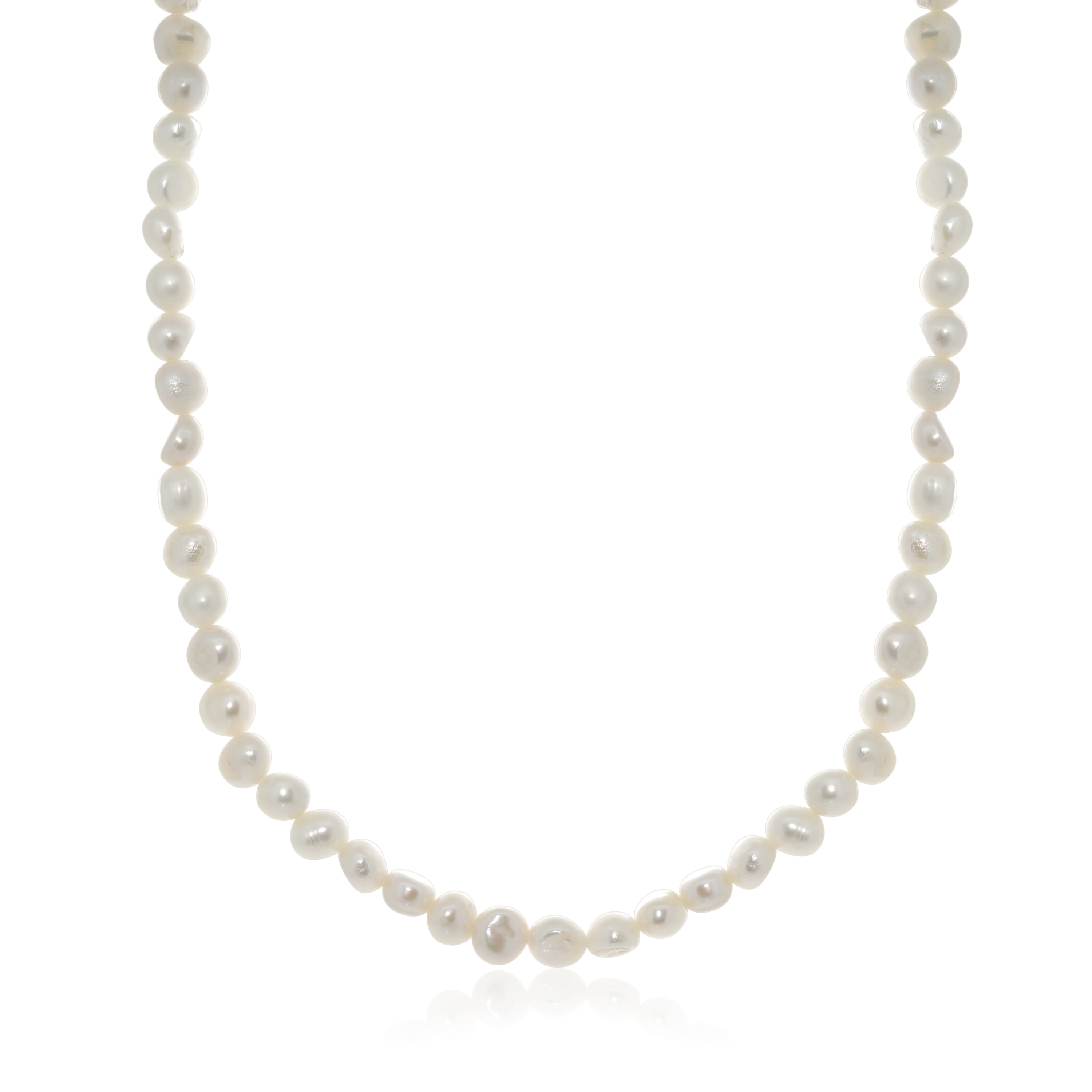 The Freshwater Pearl Stone Necklace is a stunning representation of the current pearl trend, showcasing the unique beauty of each irregularly shaped freshwater pearl. This necklace features a continuous strand of lustrous pearls, each with its own distinct character, creating an organic and sophisticated look. The natural variations in color and texture add depth and interest, making it a standout piece for any occasion. Perfect for layering or wearing alone, the Freshwater Pearl Stone Necklace effortlessly elevates your outfit, embodying the elegance and timelessness of pearls while embracing contemporary fashion. Embrace the trend of pearls and make a statement with this exquisite necklace that combines classic charm with modern flair.