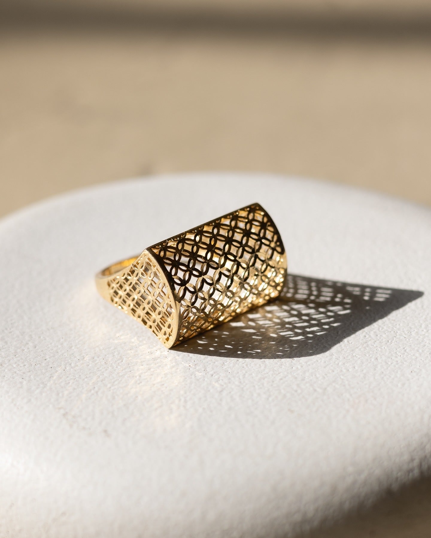 Delicate, artistic, and timeless, the Filigree Design Ring in 18k Yellow Gold blends intricate craftsmanship with effortless elegance. Featuring an elongated silhouette and a lace-like filigree pattern, this ring captures the beauty of lightness and detail with a modern, sophisticated twist.