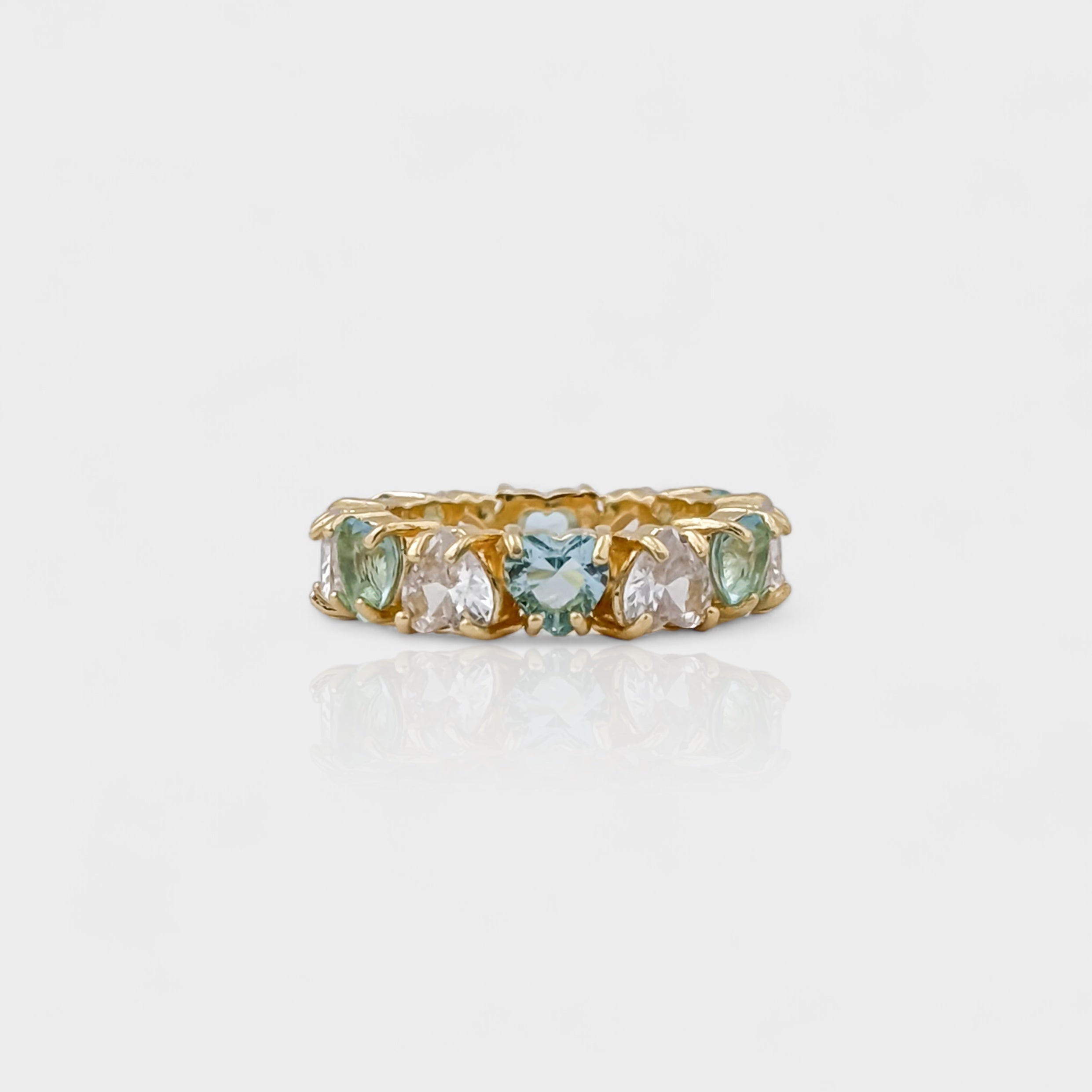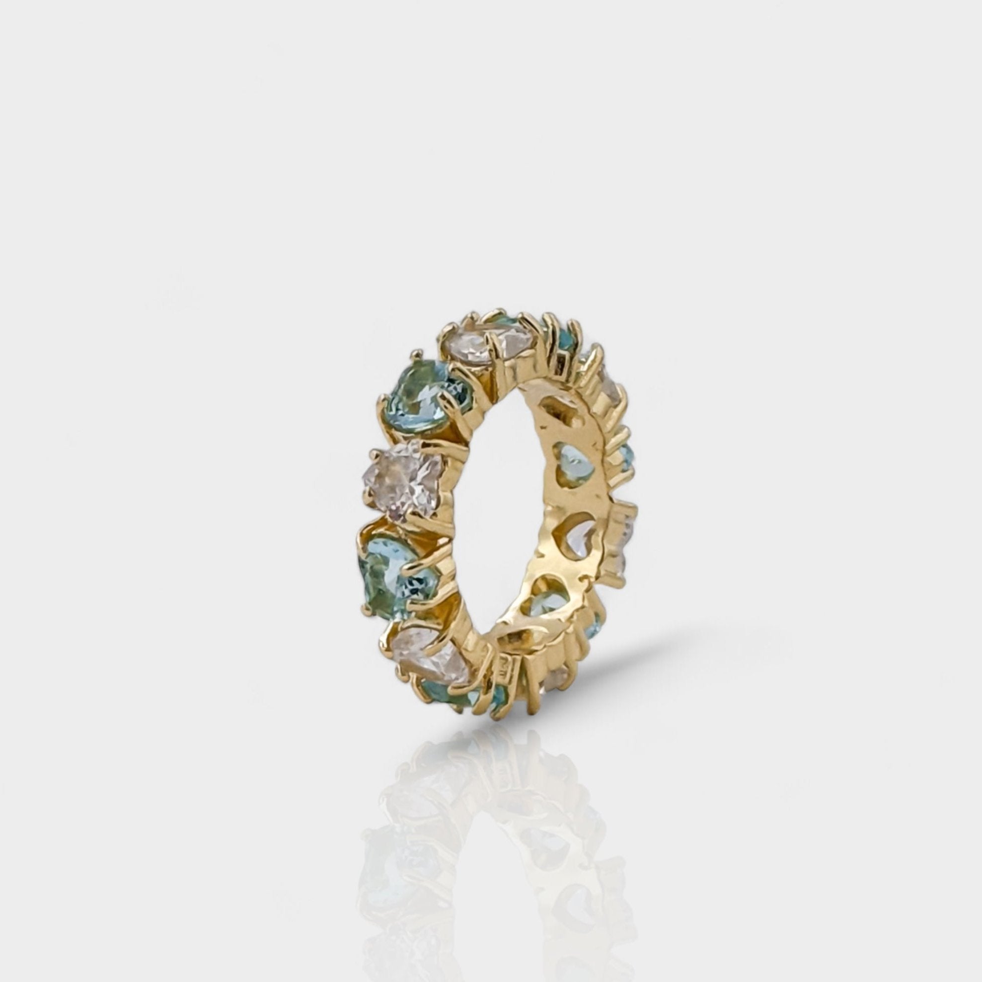 Heart Cut Blue and Clear Zirconia Eternity Ring