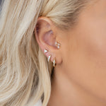 The Liora Hoops are delicate hoops adorned with micro zirconias, offering a subtle and sophisticated shine. Perfect for the second or third piercing, these hoops are ideal for stacking with other earrings. With a minimalist and elegant design, they’re versatile enough to complement any look, from everyday wear to special occasions, adding a touch of light and sophistication to your style.